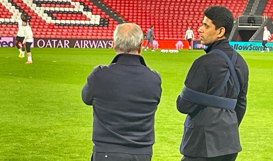 A pesar de las molestias y del reciente paso por quirófano, Al-Khelaifi decidió viajar a España para apoyar a su equipo. Ha estado presente desde primera hora de la tarde, en un vuelo separado del resto del equipo dirigido por Luis Enrique. En San Mamés, donde se entrena el PSG, no dudó en seguir de cerca las jugadas mientras conversaba animadamente con Luis Campos, director deportivo del club.