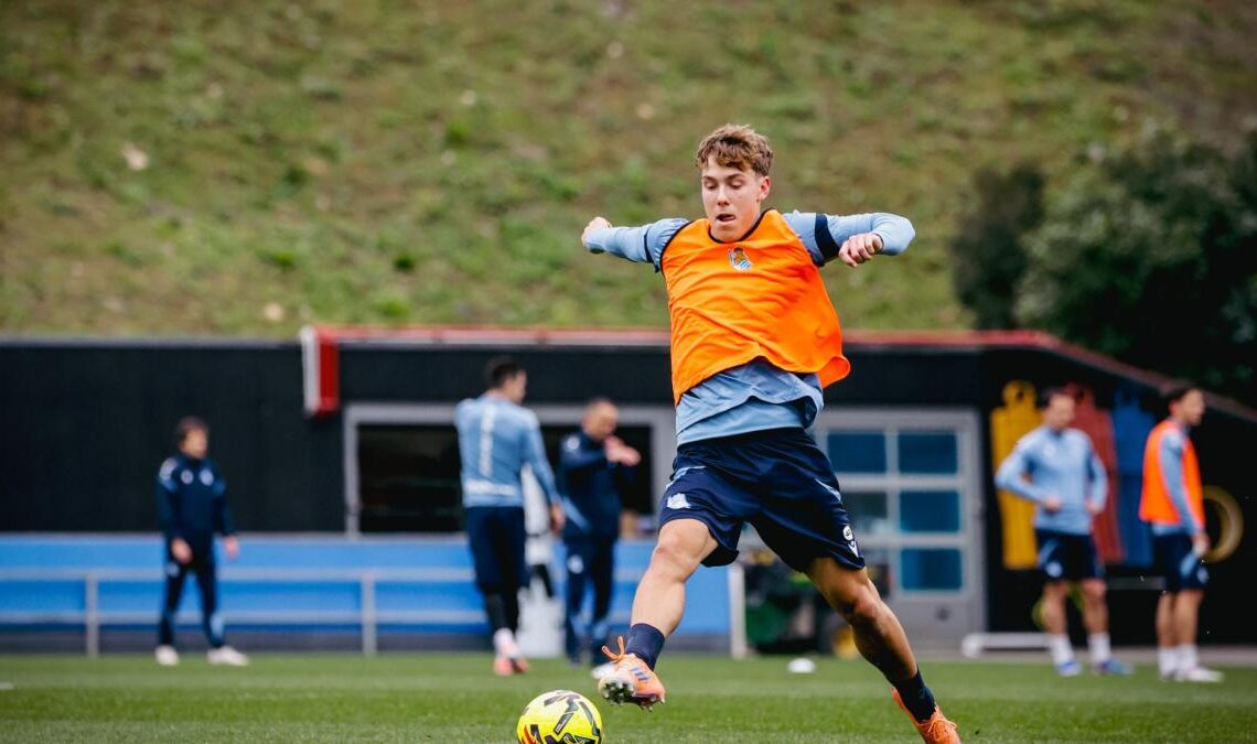 En un emocionante giro del destino, Ibai Agirre, un joven pivote nacido en 2007 en Mutriku, ha dado un paso de gigante en su carrera. Esta mañana se le vio entrenando con el primer equipo de la Real Sociedad, una experiencia que muchos soñamos pero pocos logran alcanzar. Después de haber jugado hasta enero con el juvenil y dar el salto al tercer equipo, este chaval ya se ha hecho un nombre entre los más grandes.