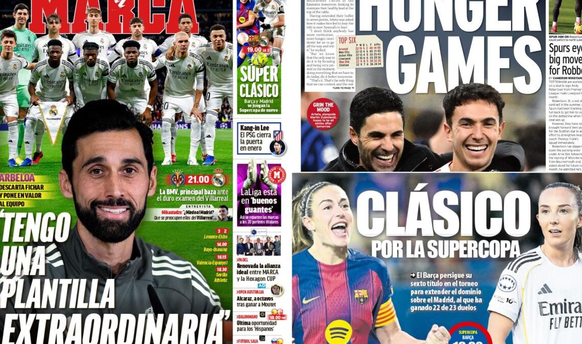 El fútbol, como siempre, nos regala historias y emociones. Este sábado 24 de enero, las portadas de los diarios deportivos nos traen dos relatos que destacan entre la multitud. Por un lado, el orgullo palpable de Arbeloa, un nombre que resuena con fuerza en la afición, y por otro, los Juegos del Hambre a los que se enfrenta Arteta, un reto que muchos ven casi como una batalla épica.