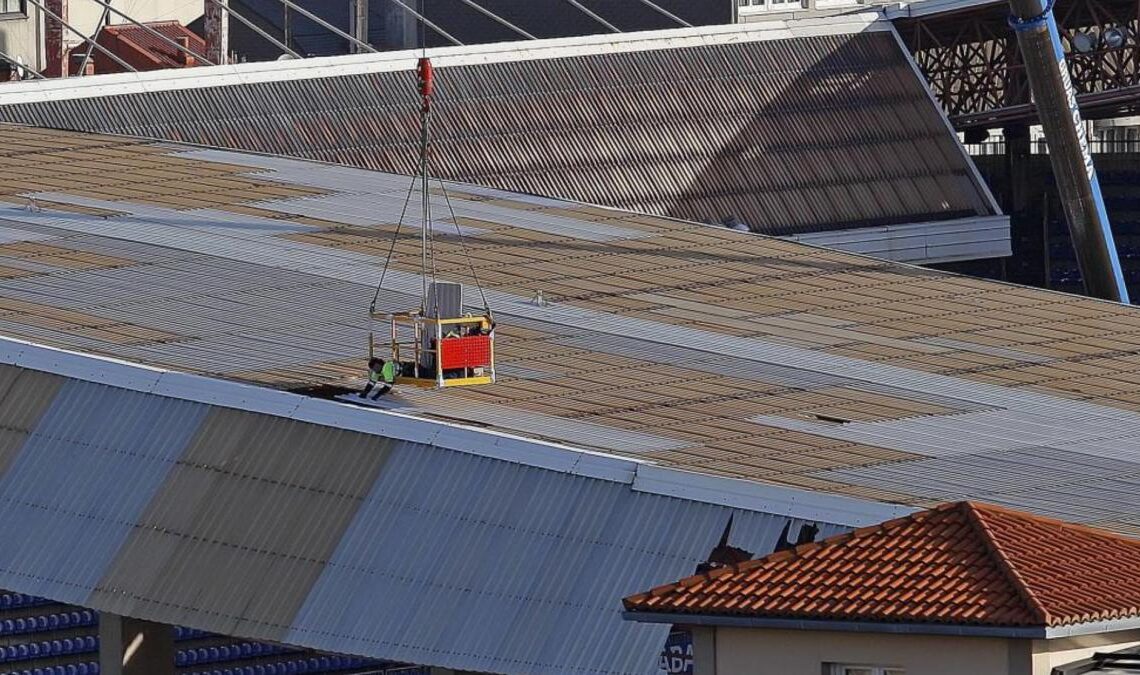 El viento desata su furia en Riazor y arranca parte de la cubierta