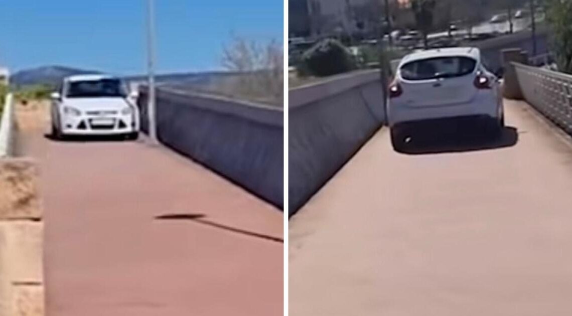Un coche se atreve a pisar un puente peatonal en Palma: la locura al volante