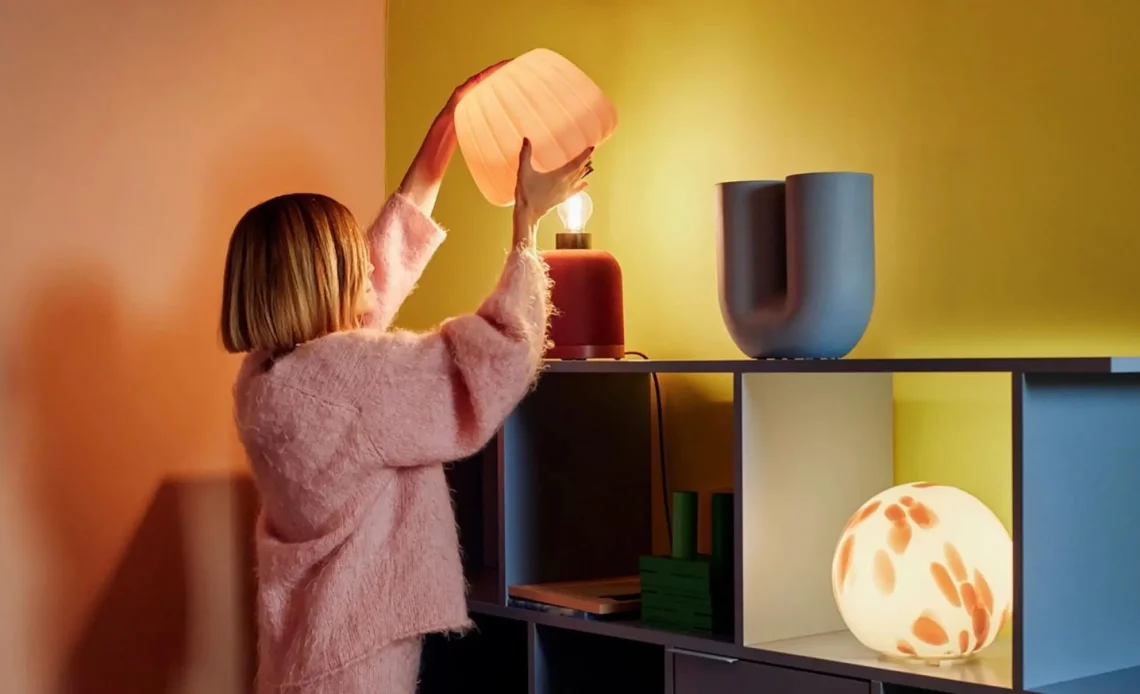 Pero eso no es todo. También hay lámparas-altavoz KULGLASS, que mezclan luz y sonido con un diseño inspirador: una silueta acogedora y una pantalla que recuerda a un helado cremoso. Y si te encanta crear ambientes cálidos, la nueva versión de la lámpara FADO será tu aliada perfecta; su acabado manchado emite una luz suave ideal para relajarte después de un largo día.