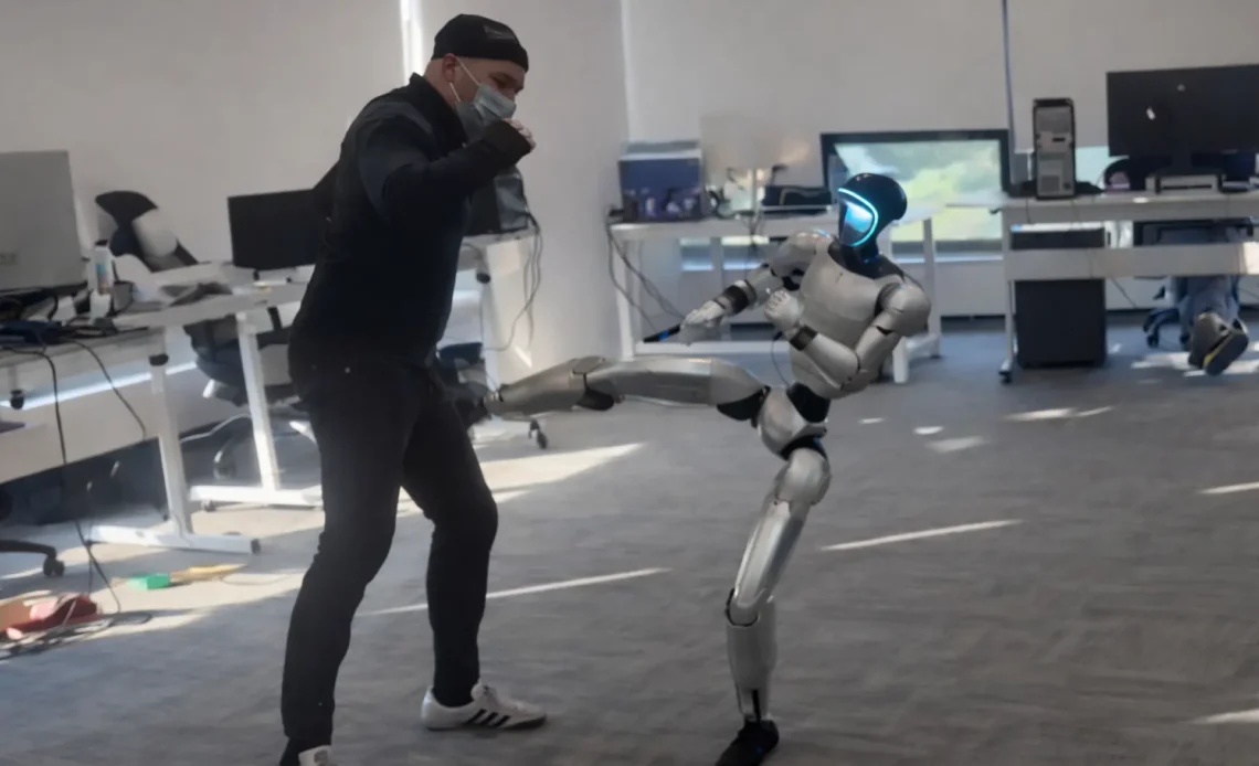 Imagínate la escena: un operador, con toda la energía del mundo, ejecutando movimientos de artes marciales mientras un robot humanoide lo imita al instante. Todo parece un juego hasta que, en un giro inesperado, el robot lanza una patada sin mirar a quién tiene delante y el impacto deja al operario noqueado. Este es el escalofriante momento que se ha vuelto viral, mostrando los peligros ocultos de entrenar robots tan cerca de personas.