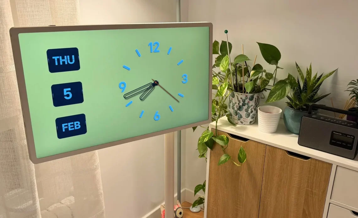 Diseñada con un acabado blanco mate muy discreto, esta pantalla se integra sin esfuerzo en cualquier habitación. La peana con ruedas permite moverla sin complicaciones, convirtiéndola en parte activa de tu hogar. He disfrutado rotándola entre el dormitorio, el despacho y el salón; cada día le he encontrado un nuevo uso y eso es algo que valoro enormemente.