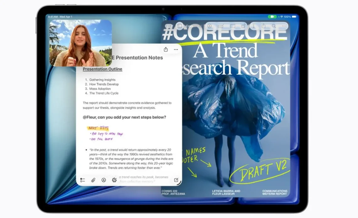 El nuevo iPad Air se presenta en dos tamaños, 11 y 13 pulgadas, adaptándose a nuestras necesidades. La verdadera joya aquí es el chip M4. Con una CPU de ocho núcleos y una GPU de nueve núcleos, este pequeño monstruo está diseñado para que todo fluya sin problemas. Apple lo dice claramente: este chip está hecho para llevar la inteligencia artificial a otro nivel.