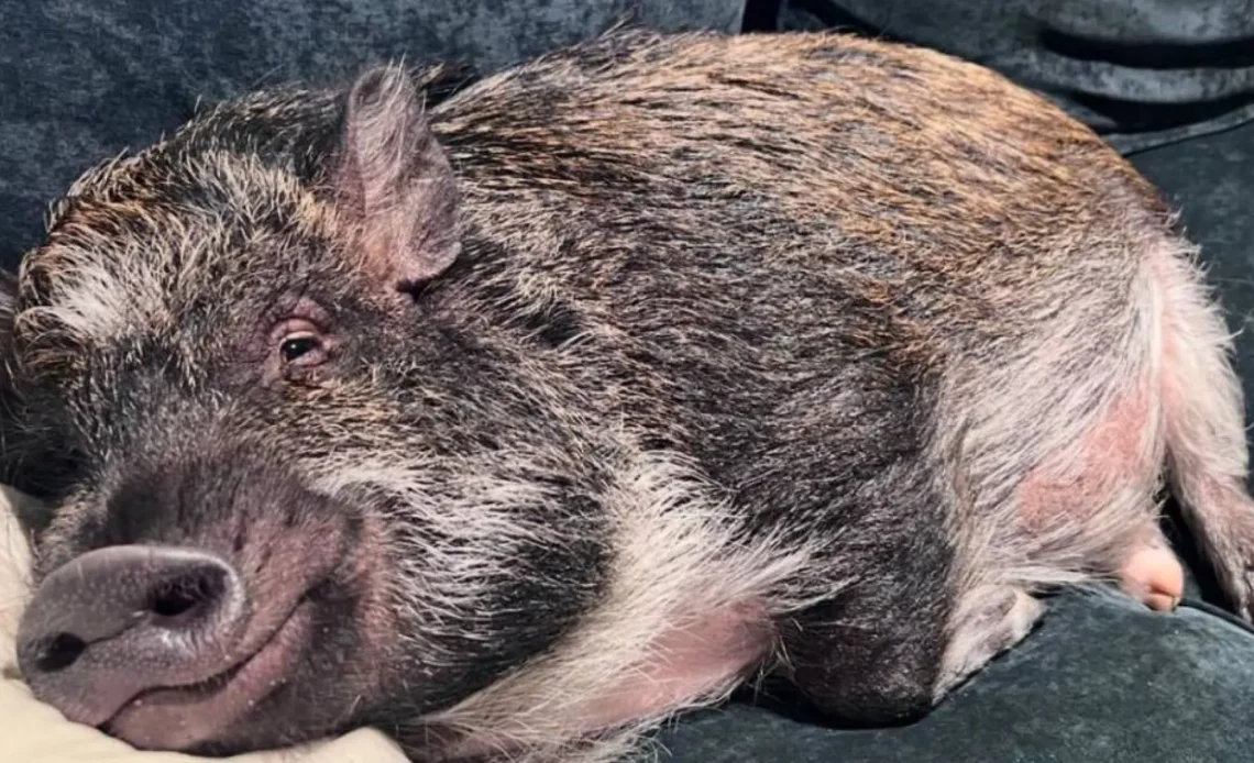 Merlín, el cerdito que conquista las redes y habla con su dueña