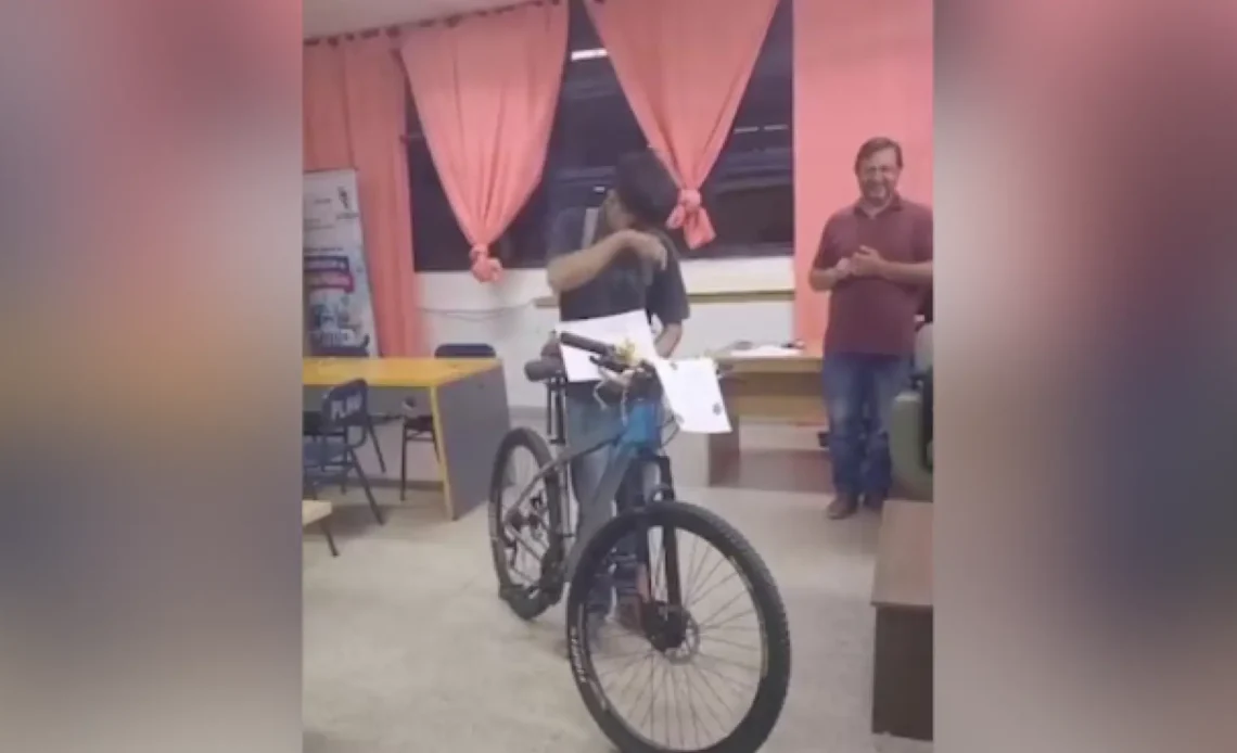 En su graduación, sus profesores decidieron hacerle un regalo muy especial: una nueva bicicleta. Con la colaboración de sus compañeros y toda la comunidad educativa, se reunieron para mostrarle cuánto valoraban su dedicación. «Sabemos que este ha sido tu compañero durante los cuatro años», dijo Alicia, una de las profesoras emocionadas por el esfuerzo del chico. Al entregarle el regalo, también le expresaron: «Te lo ganaste. Esto es solo un pequeño reconocimiento por todo lo que has hecho».