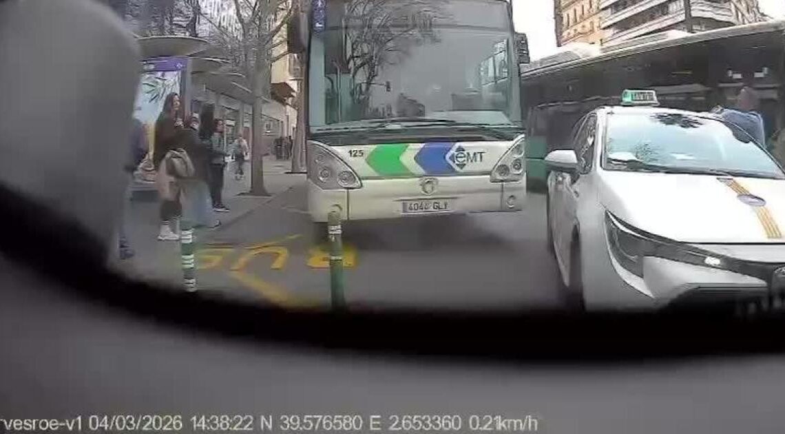 Este miércoles, alrededor de las 14.38 horas, una escena impactante tuvo lugar en la Plaza de España de Palma. Un autobús de la Empresa Municipal de Transports (EMT), que cubría la línea número 19, decidió embestir adrede a un taxi que estaba detenido con sus intermitentes encendidos, justo al lado de una parada.